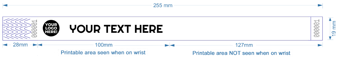 Edge-to-edge or bleed-off printing is not available for Tyvek wristbands.