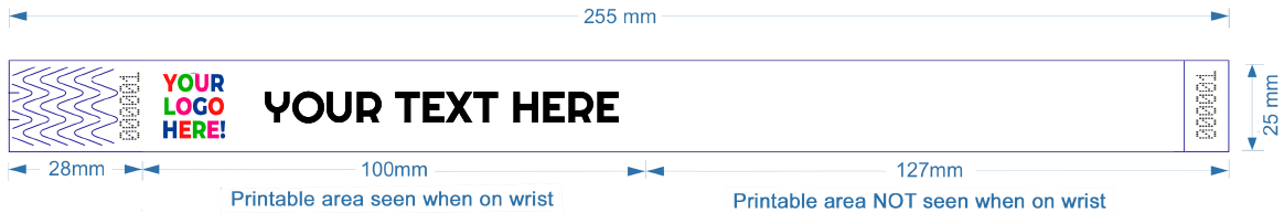 Edge-to-edge or bleed-off printing is not available for Tyvek wristbands.